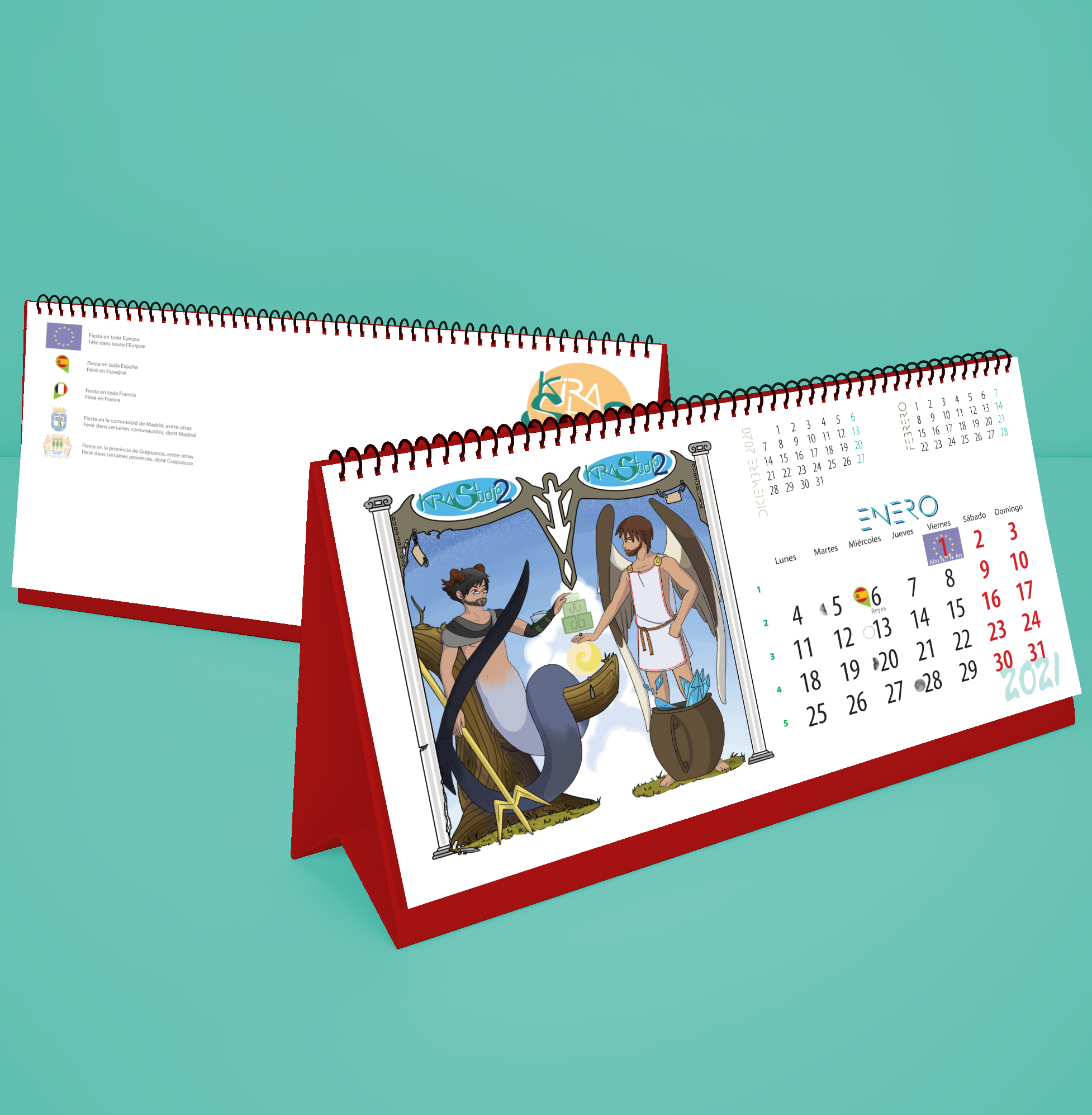 - Diseño de ilustraciones mensuales: Creo las ilustraciones específicas para cada mes, asegurándome de que haya cohesión en la totalidad del año.