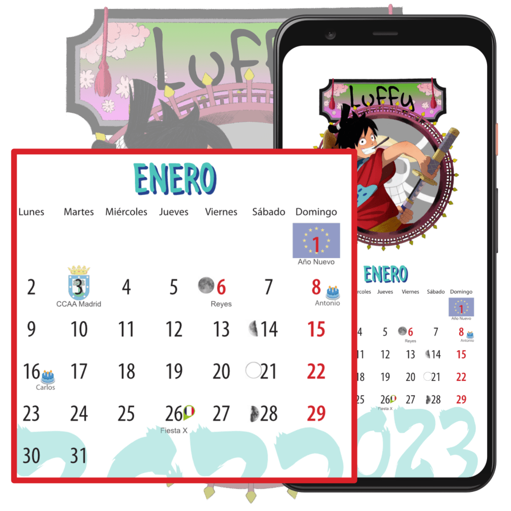 - Maquetación y organización: Dispongo las ilustraciones y la información de las fechas de forma intuitiva y visualmente agradable.