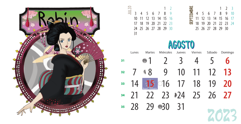 Además del calendario de mesa, empiezo a hacer calendarios digitales por 1€. Tambien disponibles en ko-fi y totalmente personalizables mes a mes.