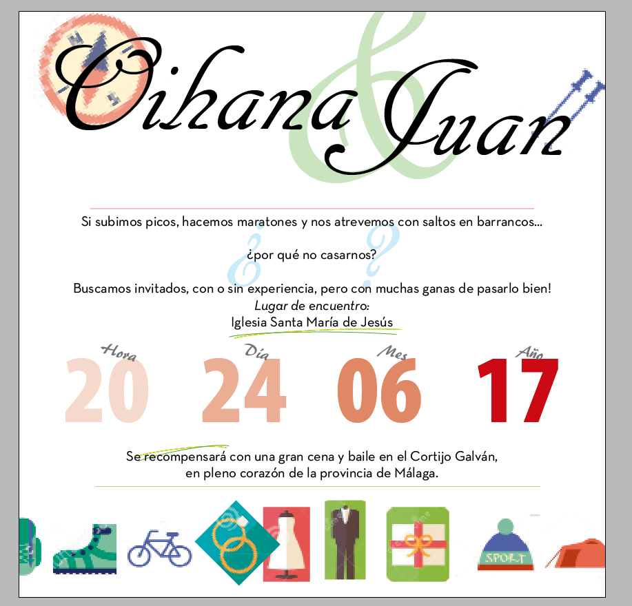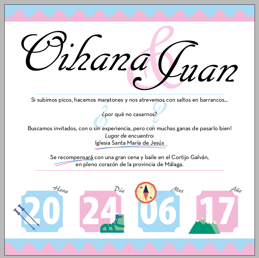 El propósito principal fue crear una invitación que fusionara dos conceptos clave solicitados por los clientes: el tema de montaña y la esencia tradicional de una boda. La meta era lograr una pieza que, a pesar de lo apartadas que están esas dos ideas, culminara en un diseño que los novios amaran y que comunicara claramente el ambiente de su celebración.
